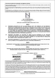 PART A - SHARE BUY-BACK STATEMENT IN RELATION TO THE PROPOSED RENEWAL OF THE AUTHORITY FOR THE COMPANY TO PURCHASE ITS OWN SHARES OF UP TO TEN PER CENTUM (10%) OF THE TOTAL NUMBER OF ISSUED SHARES; AND PART B - CIRCULAR TO SHAREHOLDERS IN RELATION TO THE PROPOSED RENEWAL OF EXISTING SHAREHOLDERS' MANDATE AND PROPOSED NEW SHAREHOLDERS' MANDATE FOR RECURRENT RELATED PARTY TRANSACTIONS OF A REVENUE AND/OR TRADING NATURE