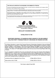 CIRCULAR TO SHAREHOLDERS IN RELATION TO THE PROPOSED ACQUISITIONS OF: (I) 100,000 ORDINARY SHARES REPRESENTING THE ENTIRE EQUITY INTEREST IN GROSS SYNERGY SDN BHD; AND (II) 50,000 ORDINARY SHARES REPRESENTING THE ENTIRE EQUITY INTEREST IN DAY ONE TECHNOLOGY SDN BHD, FROM YEOW CHENG HOCK, CHEOK KIAN HING, HO SOO CHERNG AND DING CHEW KEAT, FOR A TOTAL PURCHASE CONSIDERATION OF RM17,060,424 TO BE SATISFIED VIA A COMBINATION OF CASH AND ISSUANCE OF NEW ORDINARY SHARES IN PANDA (COLLECTIVELY, REFERRED TO AS "PROPOSED ACQUISITIONS")