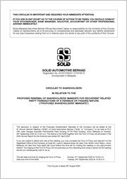 CIRCULAR TO SHAREHOLDERS IN RELATION TO THE PROPOSED RENEWAL OF SHAREHOLDERS MANDATE FOR RECURRENT RELATED PARTY TRANSACTIONS OF A REVENUE OR TRADING NATURE (PROPOSED SHAREHOLDERS MANDATE)