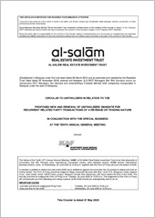 CIRCULAR TO UNITHOLDERS OF AL-SALAM REAL ESTATE INVESTMENT TRUST ("AL-SALAM") IN RELATION TO THE PROPOSED NEW AND RENEWAL OF UNITHOLDERS' MANDATE FOR RECURRENT RELATED PARTY TRANSACTIONS OF A REVENUE OR TRADING NATURE