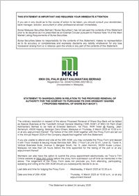 STATEMENT TO SHAREHOLDERS IN RELATION TO THE PROPOSED RENEWAL OF AUTHORITY FOR THE COMPANY TO PURCHASE ITS OWN ORDINARY SHARES
