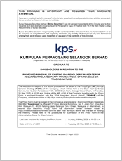 KUMPULAN PERANGSANG SELANGOR BERHAD PROPOSED RENEWAL OF EXISTING SHAREHOLDERS' MANDATE FOR RECURRENT RELATED PARTY TRANSACTIONS OF A REVENUE OR TRADING NATURE