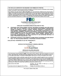 CIRCULAR TO SHAREHOLDERS IN RELATION TO THE PROPOSED RENOUNCEABLE RIGHTS ISSUE OF UP TO 836,621,880 NEW ORDINARY SHARES IN FBG HOLDINGS BERHAD (FORMERLY KNOWN AS FAJARBARU BUILDER GROUP BHD) ("FBG" OR THE "COMPANY") ("FBG SHARE(S)" OR "SHARE(S)") ("RIGHTS SHARE(S)") ON THE BASIS OF 3 RIGHTS SHARES FOR EVERY 4 EXISTING FBG SHARES HELD, TOGETHER WITH UP TO 278,873,960 FREE DETACHABLE WARRANTS IN FBG ("WARRANT(S) D") ON THE BASIS OF 1 WARRANT D FOR EVERY 3 RIGHTS SHARES SUBSCRIBED FOR, ON AN ENTITLEMENT DATE TO BE DETERMINED AND ANNOUNCED LATER ("PROPOSED RIGHTS ISSUE WITH WARRANTS")