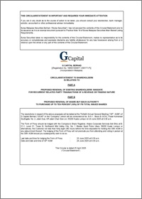 CIRCULAR/STATEMENT TO SHAREHOLDERS IN RELATION TO:- 1) PROPOSED RENEWAL OF EXISTING SHAREHOLDERS' MANDATE FOR RECURRENT RELATED PARTY TRANSACTIONS OF A REVENUE OR TRADING NATURE; AND 2) PROPOSED RENEWAL OF SHARE BUY-BACK AUTHORITY TO PURCHASE UP TO TEN PERCENT (10%) OF ITS TOTAL ISSUED SHARES