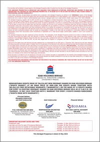 RENOUNCEABLE RIGHTS ISSUE OF 766,524,307 NEW ORDINARY SHARES IN SIAB HOLDINGS BERHAD ("RIGHTS SHARES") AT AN ISSUE PRICE OF RM0.1200 PER RIGHTS SHARE TOGETHER WITH 383,262,153 FREE DETACHABLE WARRANTS ("WARRANT(S)") ON THE BASIS OF 13 RIGHTS SHARES FOR EVERY 10 EXISTING ORDINARY SHARES IN SIAB HOLDINGS BERHAD HELD AS AT 5.00 P.M. ON THURSDAY, 23 MAY 2024 TOGETHER WITH 1 WARRANT FOR EVERY 2 RIGHTS SHARES SUBSCRIBED ("RIGHTS ISSUE WITH WARRANTS")