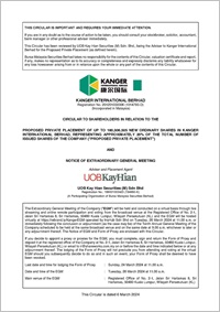 PROPOSED PRIVATE PLACEMENT OF UP TO 180,306,505 NEW ORDINARY SHARES IN KANGER INTERNATIONAL BERHAD, REPRESENTING APPROXIMATELY 20% OF THE TOTAL NUMBER OF ISSUED SHARES OF THE COMPANY ("PROPOSED PRIVATE PLACEMENT")