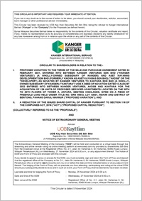 CIRCULAR TO SHAREHOLDERS IN RELATION TO THE: - I. PROPOSED VARIATION TO THE TERMS OF THE SALE AND PURCHASE AGREEMENT DATED 24 FEBRUARY 2021, ENTERED INTO BETWEEN KANGER VENTURES SDN BHD ("KANGER VENTURES") (A WHOLLY-OWNED SUBSIDIARY OF KANGER) AND ASET KAYAMAS DEVELOPMENT SDN BHD (FORMERLY KNOWN AS ASET KAYAMAS SDN BHD) ("AKDSB" OR THE "DEVELOPER") AS NOVATED BY KANGER VENTURES TO KANTARA SDN BHD (A WHOLLY OWNED SUBSIDIARY OF KANGER) ("KANTARA") VIDE A DEED OF NOVATION DATED 12 AUGUST 2022 ENTERED INTO BETWEEN KANGER VENTURES, AKDSB AND KANTARA FOR THE ACQUISITION OF 126 UNITS OF PROPOSED SERVICED APARTMENTS LOCATED ON THE 30TH TO 45TH FLOORS OF TOWER A, ANTARA, GENTING HIGHLANDS, SITED ON A PIECE OF FREEHOLD LAND HELD UNDER TITLE NO. GRN 45572, LOT 43031, MUKIM AND DISTRICT OF BENTONG, PAHANG DARUL MAKMUR ("PROPOSED VARIATION"); AND II. A REDUCTION OF THE ISSUED SHARE CAPITAL OF KANGER PURSUANT TO SECTION 116 OF THE COMPANIES ACT, 2016 ("ACT") ("PROPOSED CAPITAL REDUCTION")