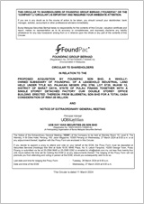 FOUNDPAC GROUP BERHAD ("FOUNDPAC" OR THE "COMPANY") CIRCULAR TO SHAREHOLDERS IN RELATION TO THE PROPOSED ACQUISITION BY FOUNDPAC SDN BHD (FPSB), A WHOLLY-OWNED SUBSIDIARY OF FOUNDPAC, OF A LEASEHOLD INDUSTRIAL LAND HELD UNDER TITLE NO. PAJAKAN NEGERI (PN) 2759, LOT 5728, MUKIM 12, DISTRICT OF BARAT DAYA, STATE OF PULAU PINANG TOGETHER WITH A SINGLE STOREY DETACHED FACTORY CUM DOUBLE STOREY OFFICE BUILDING ERECTED THEREON FOR A TOTAL CASH CONSIDERATION OF RM41.88 MILLION ("PROPOSED ACQUISITION")