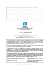STATEMENT TO SHAREHOLDERS IN RELATION TO THE PROPOSED RENEWAL OF AUTHORITY FOR THE COMPANY TO PURCHASE ITS OWN SHARES