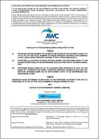 CIRCULAR TO SHAREHOLDERS IN RELATION TO: PART A (I) PROPOSED ESTABLISHMENT OF AN EMPLOYEE SHARE OPTION SCHEME ("ESOS") OF UP TO 15% OF THE TOTAL NUMBER OF ISSUED ORDINARY SHARES IN AWC BERHAD ("AWC") (EXCLUDING TREASURY SHARES, IF ANY) ("PROPOSED ESOS"); (II) PROPOSED ALLOCATION OF ESOS OPTIONS UNDER THE PROPOSED ESOS TO THE ELIGIBLE DIRECTOR(S) TO BE DETERMINED AND AS APPROVED BY SHAREHOLDERS; AND (III) PROPOSED BONUS ISSUE OF UP TO 84,839,895 FREE WARRANTS IN AWC ON THE BASIS OF 1 WARRANT FOR EVERY 4 EXISTING ORDINARY SHARES IN AWC HELD BY ENTITLED SHAREHOLDERS ON AN ENTITLEMENT DATE TO BE DETERMINED AND ANNOUNCED LATER PART B SHARE BUY-BACK STATEMENT IN RELATION TO THE PROPOSED AUTHORITY FOR AWC TO PURCHASE UP TO 10% OF THE TOTAL NUMBER OF ISSUED SHARES OF AWC