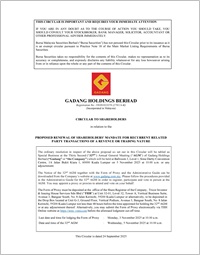 CIRCULAR TO SHAREHOLDERS IN RELATION TO THE PROPOSED RENEWAL OF SHAREHOLDERS' MANDATE FOR RECURRENT RELATED PARTY TRANSACTIONS OF A REVENUE OR TRADING NATURE