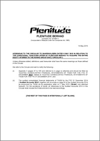 ADDENDUM TO CIRCULAR TO SHAREHOLDERS IN RELATION TO THE PROPOSED OFFER