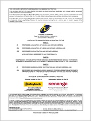 CIRCULAR TO SHAREHOLDERS IN RELATION TO THE: PART A - (I) PROPOSED ACQUISITION OF ACACIA; (II) PROPOSED ACQUISITION OF HBCM; AND (III) PROPOSED DIVERSIFICATION (COLLECTIVELY REFERRED TO AS "PROPOSALS") PART B - INDEPENDENT ADVICE LETTER FROM KENANGA INVESTMENT BANK BERHAD TO THE NON-INTERESTED SHAREHOLDERS OF HI MOBILITY BERHAD IN RELATION TO THE PROPOSALS PART C - (I) PROPOSED SHAREHOLDERS' RATIFICATION; AND (II) PROPOSED NEW SHAREHOLDERS' MANDATE FOR RECURRENT RELATED PARTY TRANSACTIONS OF A REVENUE AND/OR TRADING NATURE
