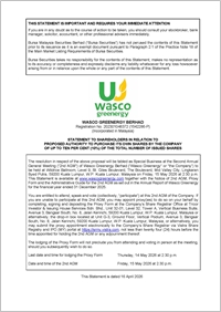 STATEMENT TO SHAREHOLDERS IN RELATION TO PROPOSED AUTHORITY TO PURCHASE ITS OWN SHARES BY THE COMPANY OF UP TO TEN PER CENT (10%) OF THE TOTAL NUMBER OF ISSUED SHARES