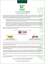 INITIAL PUBLIC OFFERING ("IPO") OF UP TO 150,000,000 ORDINARY SHARES ("IPO SHARES") IN WASCO GREENERGY BERHAD ("GREENERGY") IN CONJUNCTION WITH THE LISTING OF AND QUOTATION FOR THE ENTIRE ENLARGED ISSUED SHARE CAPITAL OF GREENERGY ON THE MAIN MARKET OF BURSA MALAYSIA SECURITIES BERHAD COMPRISING AN OFFER FOR SALE OF UP TO 75,000,000 EXISTING ORDINARY SHARES IN GREENERGY AND A PUBLIC ISSUE OF 75,000,000 NEW ORDINARY SHARES IN GREENERGY ("ISSUE SHARES") INVOLVING: (I) INSTITUTIONAL OFFERING OF UP TO 119,500,000 IPO SHARES TO MALAYSIAN INSTITUTIONAL AND SELECTED INVESTORS, INCLUDING BUMIPUTERA INVESTORS APPROVED BY THE MINISTRY OF INVESTMENT, TRADE AND INDUSTRY OF MALAYSIA AT THE INSTITUTIONAL PRICE TO BE DETERMINED BY WAY OF BOOKBUILDING ("INSTITUTIONAL PRICE"); AND (II) RETAIL OFFERING OF 30,500,000 ISSUE SHARES TO THE ELIGIBLE DIRECTORS AND EMPLOYEES OF GREENERGY AND ITS SUBSIDIARIES ("GREENERGY GROUP"), THE ELIGIBLE DIRECTORS AND EMPLOYEES OF WASCO BERHAD, THE ENTITLED SHAREHOLDERS OF WASCO BERHAD, AND THE MALAYSIAN PUBLIC AT THE RETAIL PRICE OF RM1.00 PER ISSUE SHARE ("RETAIL PRICE"), PAYABLE IN FULL UPON APPLICATION AND SUBJECT TO REFUND OF THE DIFFERENCE BETWEEN THE RETAIL PRICE AND THE FINAL RETAIL PRICE (AS DEFINED IN THE PROSPECTUS) IN THE EVENT THAT THE FINAL RETAIL PRICE IS LESS THAN THE RETAIL PRICE, SUBJECT TO THE CLAWBACK AND REALLOCATION PROVISIONS (AS DEFINED IN THE PROSPECTUS). THE FINAL RETAIL PRICE WILL BE EQUAL TO THE LOWER OF THE RETAIL PRICE OR THE INSTITUTIONAL PRICE.