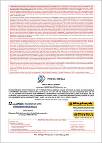 RENOUNCEABLE RIGHTS ISSUE OF UP TO RM323,735,042 NOMINAL VALUE OF EIGHT (8)-YEAR 6% REDEEMABLE CONVERTIBLE SECURED LOAN STOCKS ("RCSLS") AT 100% OF ITS NOMINAL VALUE TOGETHER WlTH UP TO