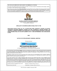 MATRIX CONCEPTS HOLDINGS BERHAD ("MCHB" OR THE "COMPANY") PROPOSED BONUS ISSUE OF UP TO 625,673,858 NEW ORDINARY SHARES IN MCHB ("MCHB SHARES" OR "SHARES") ("BONUS SHARES") ON THE BASIS OF 1 BONUS SHARE FOR EVERY 2 EXISTING MCHB SHARES HELD ON AN ENTITLEMENT DATE TO BE DETERMINED AND ANNOUNCED LATER ("ENTITLEMENT DATE") ("PROPOSED BONUS ISSUE OF SHARES")